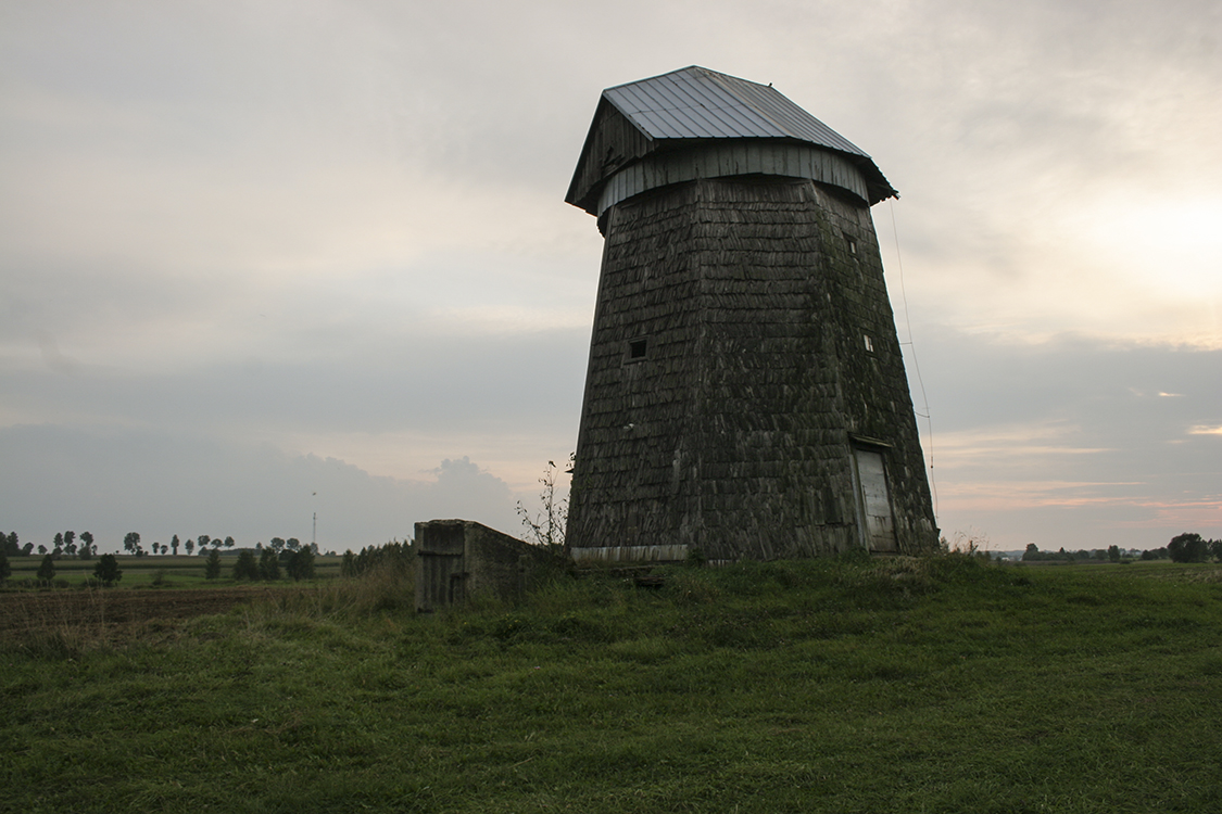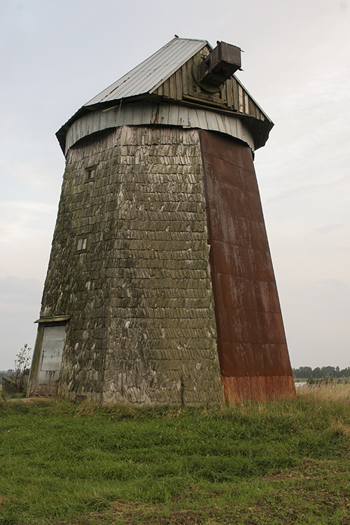 Budynek trzykondygnacyjny w konstrukcji słupowo-ryglowej, posadowiony na fundamencie z podpiwniczeniem (podobnie jak w Białousach), na planie ośmiokąta. Ma osobne wejście z zewnątrz do piwnicy. Ściany szalowane pionowo deskami, pokryte wiórem osikowym. Hełm drewniany, pokryty blachą ocynkowaną. Drewniana głowica zabezpieczona blachą (mocno skorodowaną) przed opadami atmosferycznymi, brak skrzydeł. Mechanizm obrotowy czapy osłonięty blachą ocynkowaną. Ogólny stan techniczny nie jest najgorszy, niestety nie wiem co znajduje się wewnątrz tego młyna.