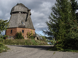 Młyny wietrzne typu wieżowego w województwie warmińsko-mazurskim.
